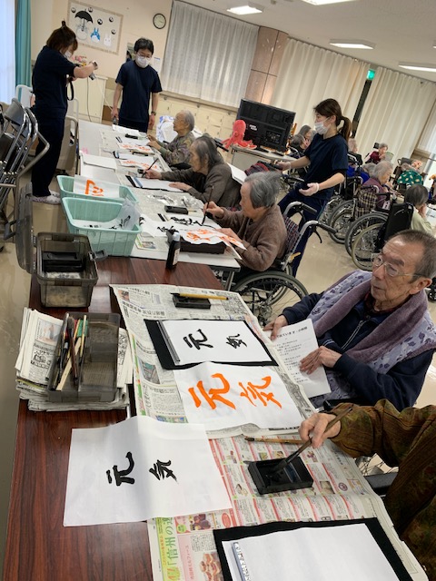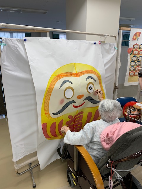 「かるた」、「合唱」、「書初め」、「ダルマの目入れ」など新年を感じていただける内容としました。