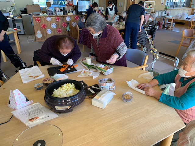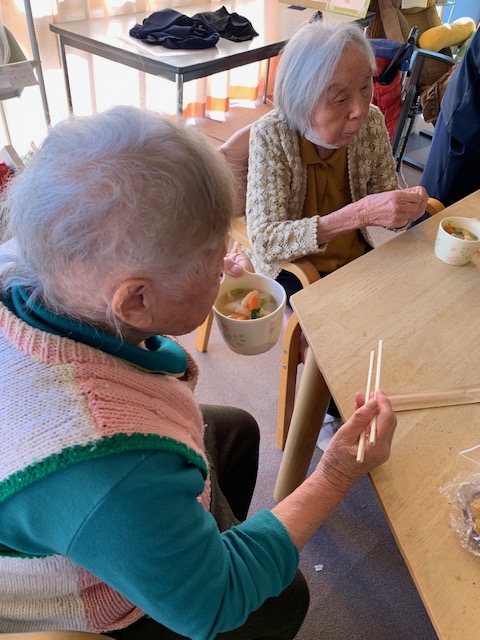 デイサービスでは鬼以外にも、「節分汁」を利用者さんと一緒に作って楽しみました♪